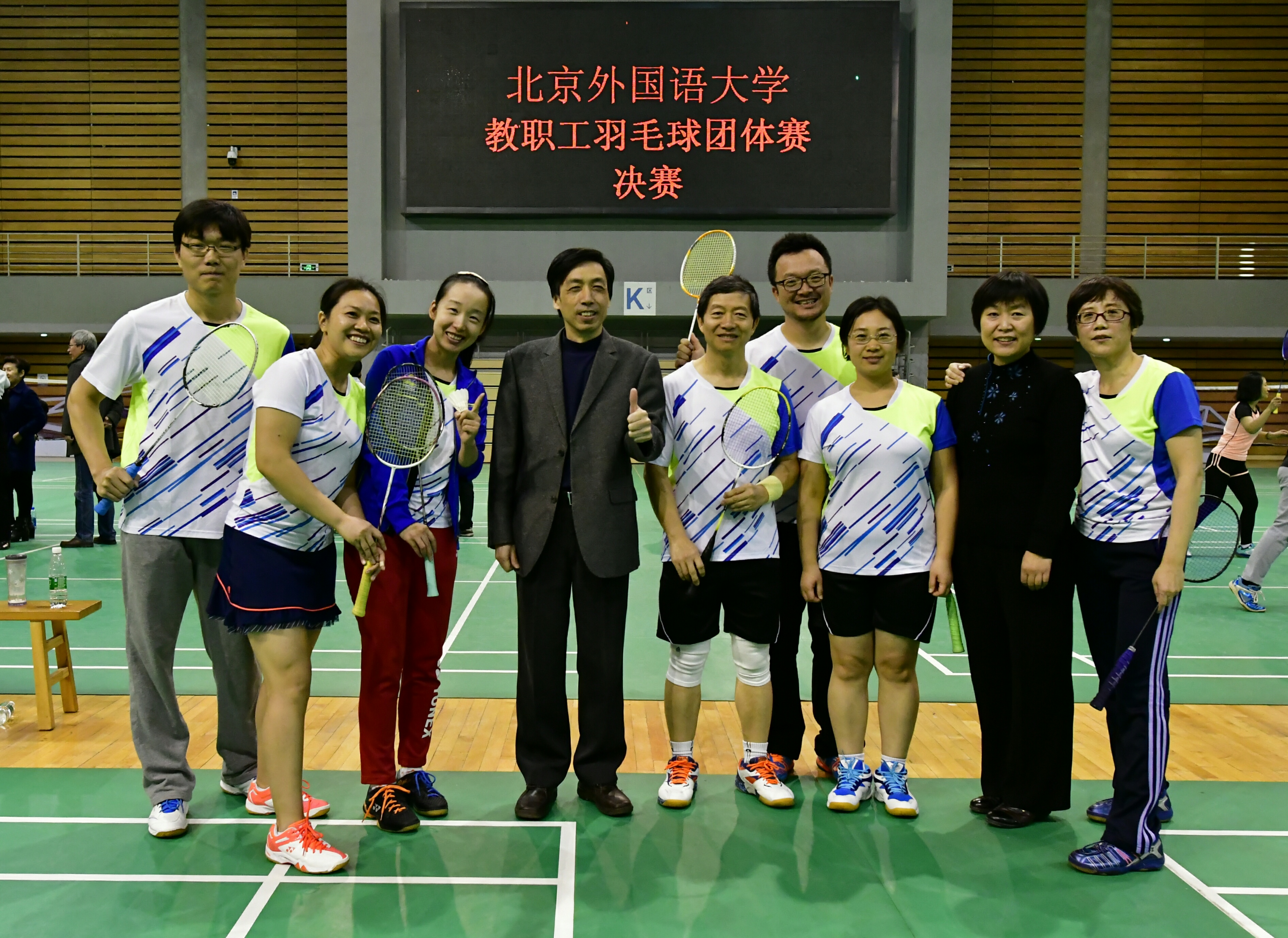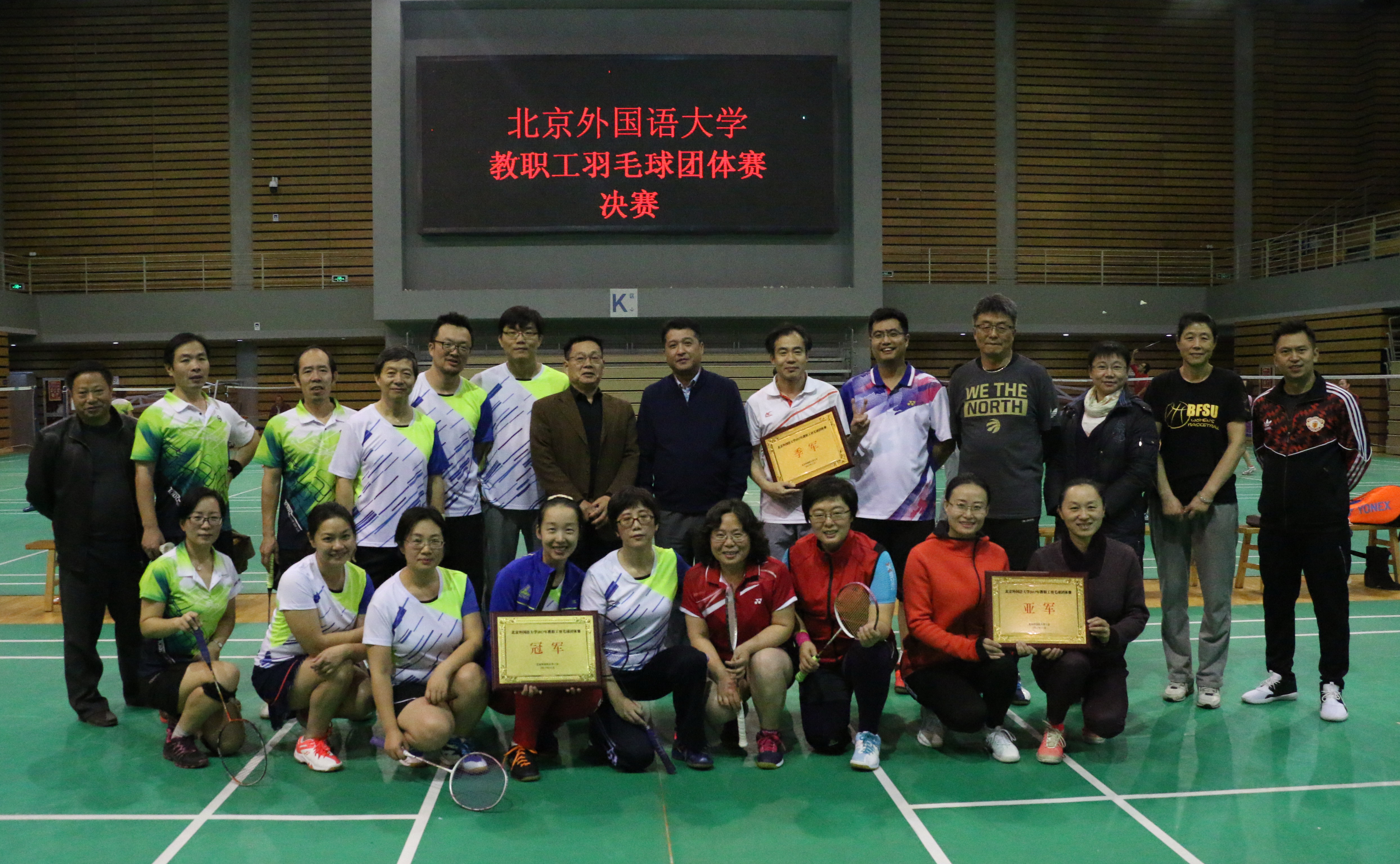2017年11月8日至16日,为丰富北外教职工体育文化生活,校工会在体育馆二层举办了2017年度教职工羽毛球团体赛。437ccm必赢国际官方网站蝉联冠军。