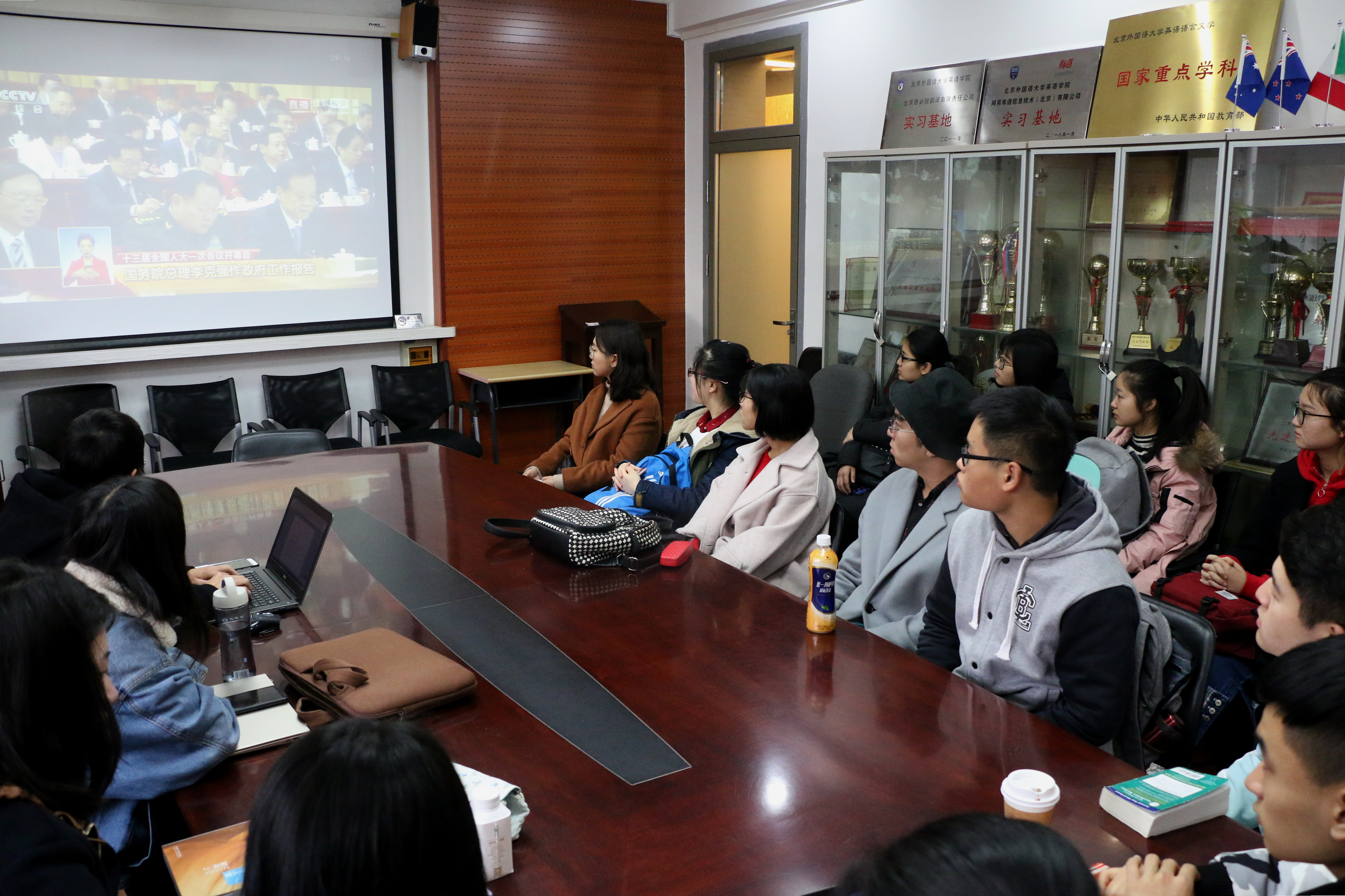 3月5日上午,第十三届全国人大一次会议在北京开幕。国务院总理李克强代表国务院,向大会报告过去五年政府工作李克强总理作政府工作报告,对今年工作提出建议。437ccm必赢国际官方网站组织师生在115会议室现场收看,党总支书记路兴、辅导员及部分学生团支部书记、学生骨干、入党积极分子等参会学习。