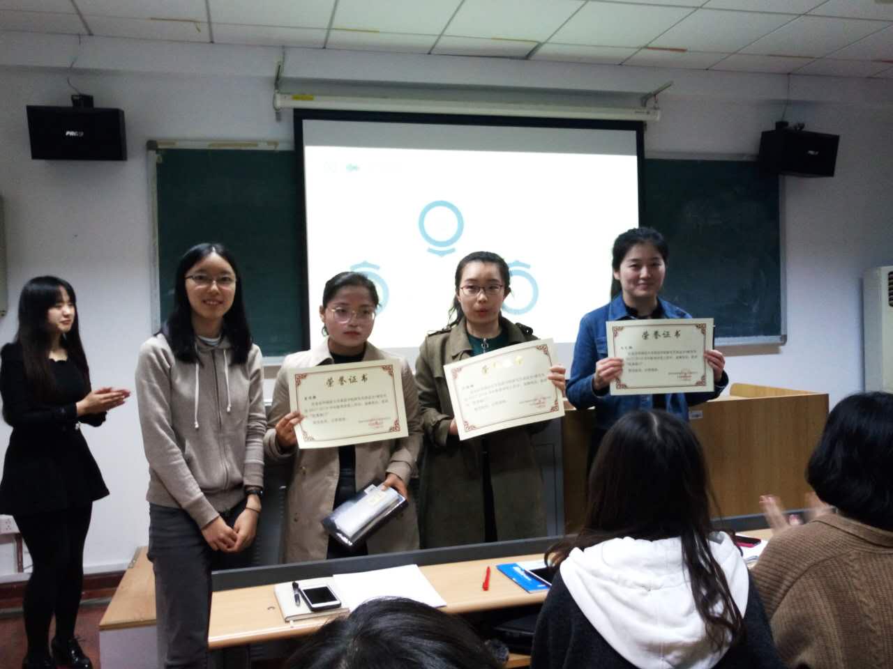 2018年3月30日晚,437ccm必赢国际官方网站研究生团总支•研究生会在437ccm必赢国际官方网站417教室举办了“2017-2018学年秋季学期评奖评优颁奖仪式”。团总支书记沈越老师和第十二届英研会成员参加了本次颁奖活动。