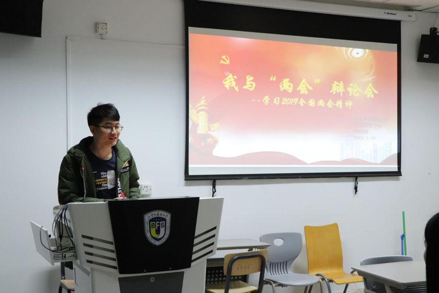 2018级英美文学、美国研究、澳大利亚研究和加拿大研究专业方向的团支部也积极学习并了解两会基本知识,并对本届两会热门议题展开热烈的辩论,如以人大代表提议将春节假期延长是否应在全国中小学进行繁体字识读教育为辩题进行辩论,并在会后进行会议总结。