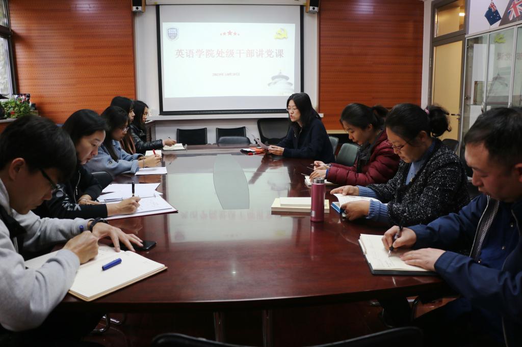 10月30日下午,437ccm必赢国际官方网站教职工行政党支部在英语楼115会议室开展“处级干部讲党课”活动。学院行政支部全体党员、发展对象和入党积极分子参加并聆听党总支书记路兴和党总支副书记孟庆琨“不忘初心,牢记使命”主题教育专题党课。