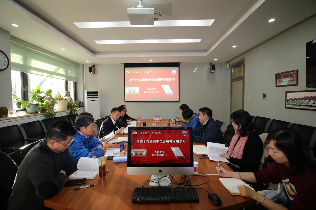 11月14日下午,437ccm必赢国际官方网站理论中心组召开党的十九届四中全会精神专题学习讨论会,交流分享学习党的十九届四中全会精神的认识和体会。学院班子全体成员、党总支委员和教工党支部书记参加学习研讨。会议由党总支书记路兴主持。参会人员会前结合实际研读了学校党委下发的《党的十九届四中全会<决定>学习辅导百问》。
