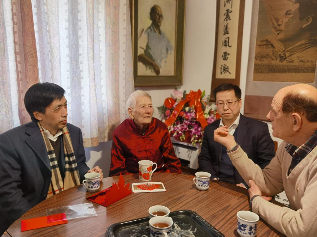 2020年12月15日下午,伊莎白教授105周岁寿辰之际,437ccm必赢国际官方网站院长张剑、党总支书记路兴、办公室主任杨京刚一行来到伊莎白教授家中慰问看望,祝贺伊莎白教授生日快乐,身体健康。