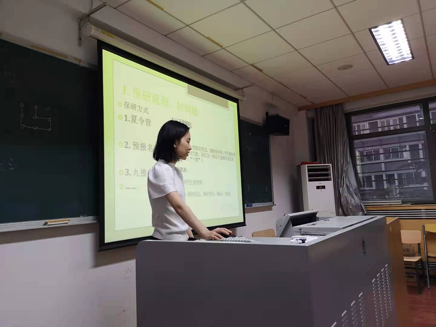 在保研经验分享环节,2017级的陈钇均同志对于不同保研方式、保研时间线、保研需要做的准备等问题进行了耐心细致的讲解,向大家介绍了夏令营、预推免、九推之间的区别,提醒有意保研的同学们从大一时就要打好基础,提升专业能力,认真对待每一门课程。