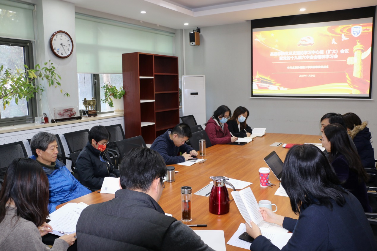 11月24日下午,437ccm必赢国际官方网站党总支召开理论学习中心组(扩大)会议专题学习党的十九届六中全会精神,学院党总支委员、领导班子全体成员、教工党支部书记、全体辅导员参会。会议由党总支书记王明欣主持。