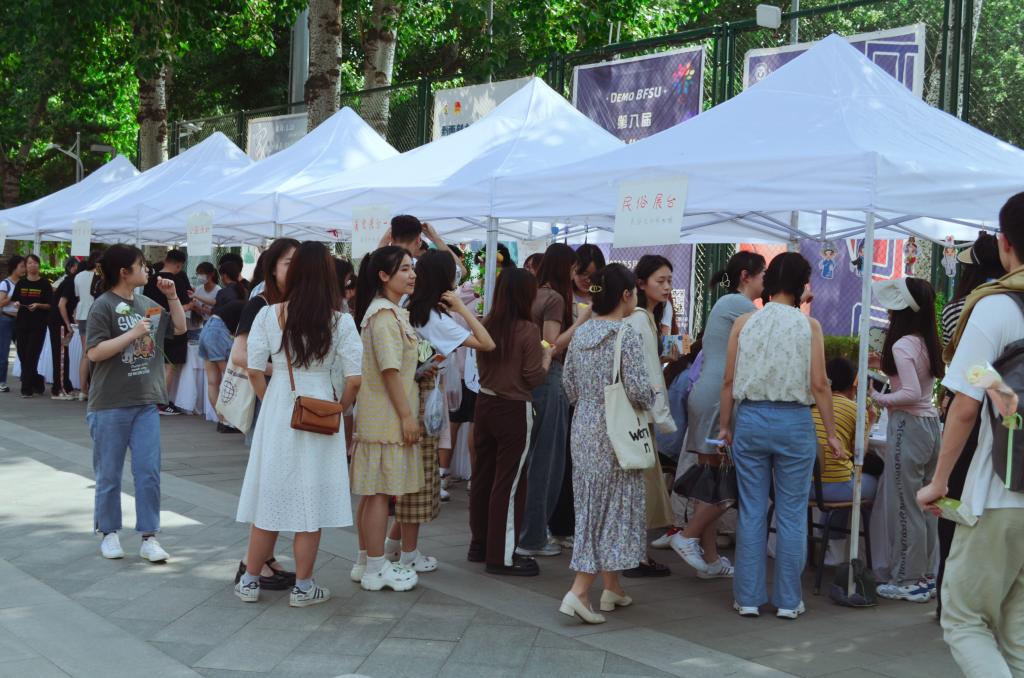 活动现场,各地方言和美食、奇思妙想的民俗文化体验馆、好玩有趣的童年游戏时光机、以诗会友的地理知识问答、定格美好瞬间的照相馆、兑换文创的精神家园,全面展示着家乡的方言文化、美食文化、民俗文化,在初夏呈现了一场璀璨夺目的文化盛宴。方言传递一方缱绻乡音,你一言、我一语,听取乡情一片。美食展台引来不少人驻足互动购买。转手绢、麻将胡牌、竹竿舞挑战等民俗活动让人目不暇接。童年游戏展台欢声笑语不绝于耳。地理展台生动形象地展现了诗词里的中国。照相馆即时打印,为家乡风景提供了展示平台。精神家园文创展台充分表达了设计者对437ccm必赢国际官方网站、对北外校园的归属感。活动期间,437ccm必赢国际官方网站党总支书记王明欣与研究生团总支书记吕籽奕全程参与了各展台互动体验,对本次活动予以高度评价。