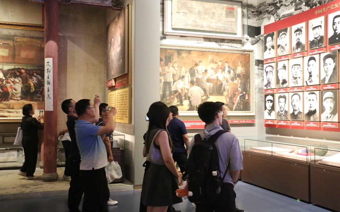 参观结束,党员师生站在一面鲜艳的五星红旗前,举行宣誓活动,重温入党誓词。