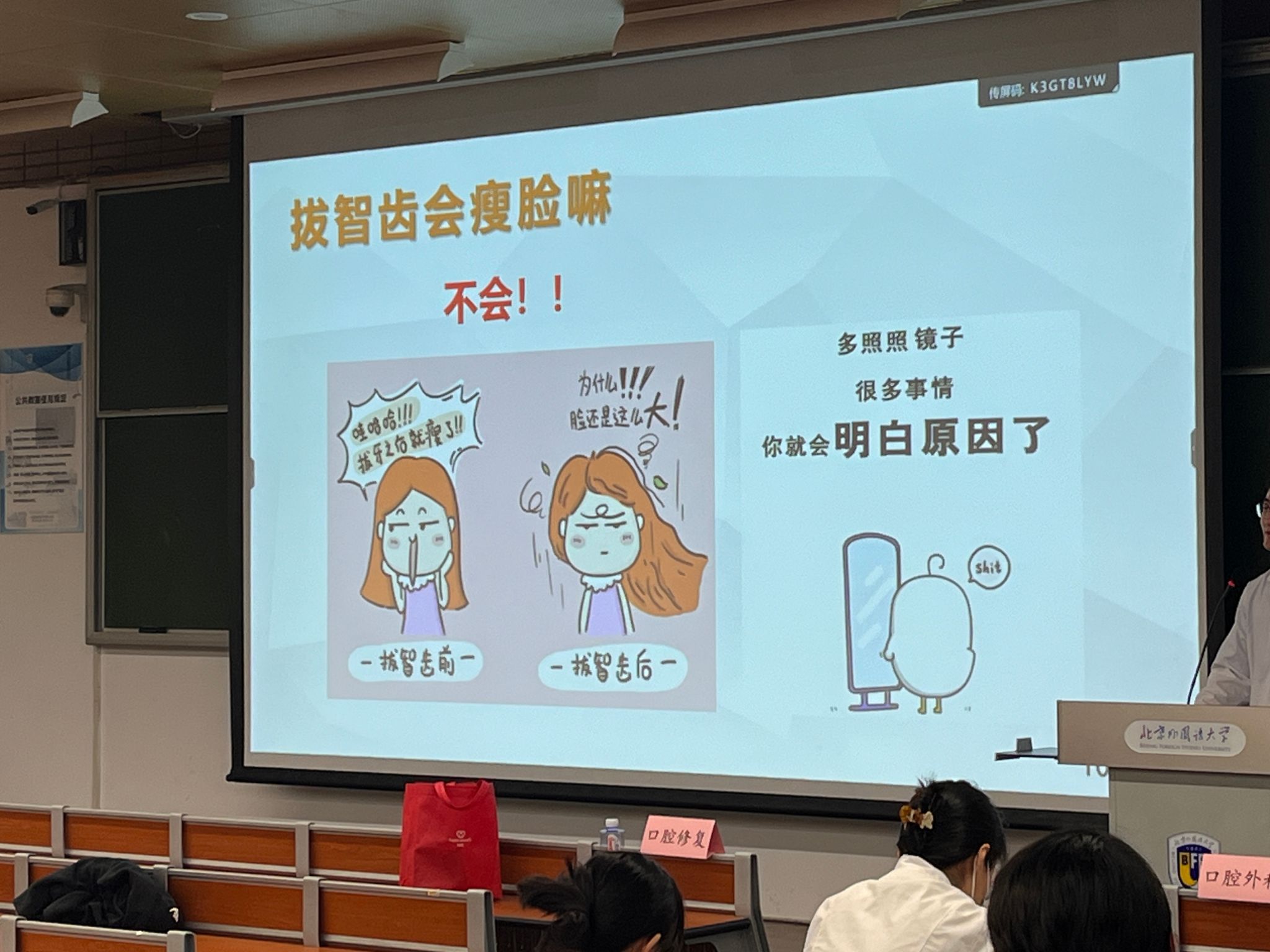 首先437ccm必赢国际官方网站本科生党支部对北大医学院同学的到来表示热烈欢迎。接下来北大医学院同学分别从口腔清洁与护理、牙齿健康美白、口腔正畸、智齿及口腔内科知识等五个方面进行科普讲座。