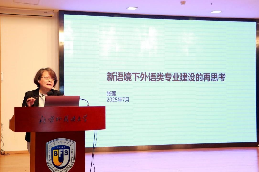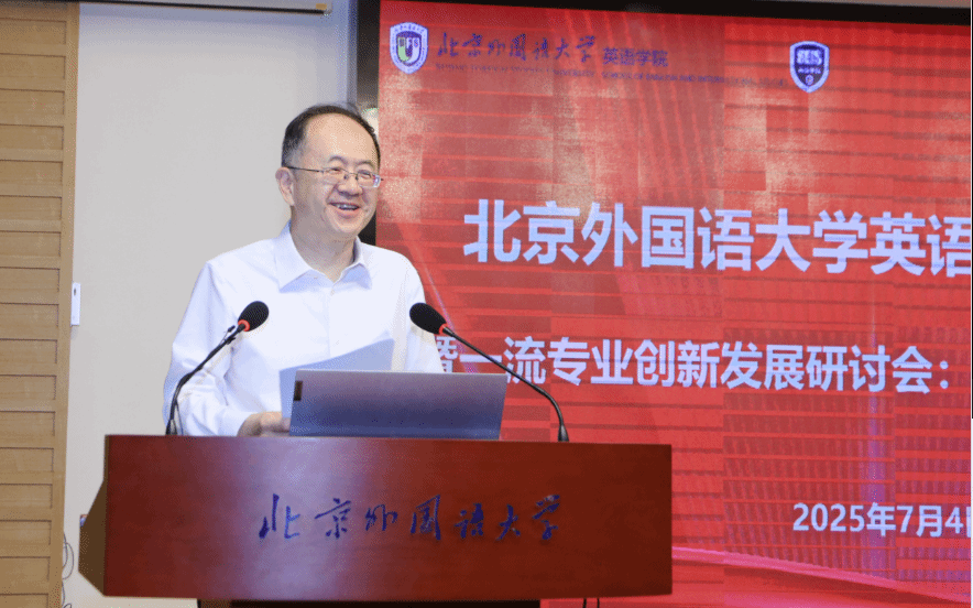 在7月4日上午开幕式上,437ccm必赢国际官方网站校长贾文键教授致辞,对AI时代英语专业的发展与未来作出深刻阐述。他认为,AI技术的迅速发展给传统外语教学带来挑战,教师应主动拥抱技术,有效使用AI助力外语教学和科研。贾文键指出,北外在2025年QS语言学排名跃居全球第18位,437ccm必赢国际官方网站应该以此为起点思考学科建设,不断思考学生能力培养,谋定本硕博教育教学改革方向,助推学院学科建设的纵深发展,持续发挥北外437ccm必赢国际官方网站的引领作用。