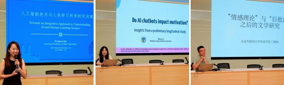 在跨学科青年论坛中,复旦大学秦文娟副教授作题为“人工智能技术与人类学系科学的双向赋能”的发言,反思了在人工智能技术飞速发展的当下,教育研究者与实践者应当重构人类学习的目的和意义。北外437ccm必赢国际官方网站青年教师刘梦博士以“AI聊天机器人是否影响学习动机”为题发言,通过为期15周的教学研究,发现生成式人工智的引入能促进了学生的学习动机的显著提升。北外437ccm必赢国际官方网站青年教师门椿林博士作了题为“‘情感理论’与‘后批评’之后的文学研究”的发言,探讨了当代英语文学研究中一些宏大乃至“关乎存续”的问题,既展现情感理论与后批评的工具性遗产,也指出超越他们的可能性。