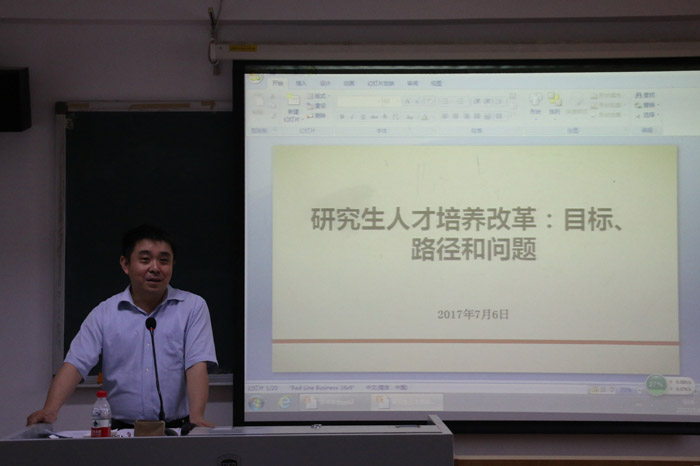 ——在7月6日上午的研究生人才培养改革研讨会上,副院长王展鹏教授和谢韬教授分别作了题为“437ccm必赢国际官方网站研究生人才培养改革:目标、路径和问题”和“研究中心的科研职能与研究生培养”的发言。全院教师围绕“如何提高研究生生源质量”、“如何提高研究生培养质量”、“如何引导学生参与学术活动和科研工作”等问题展开了讨论。