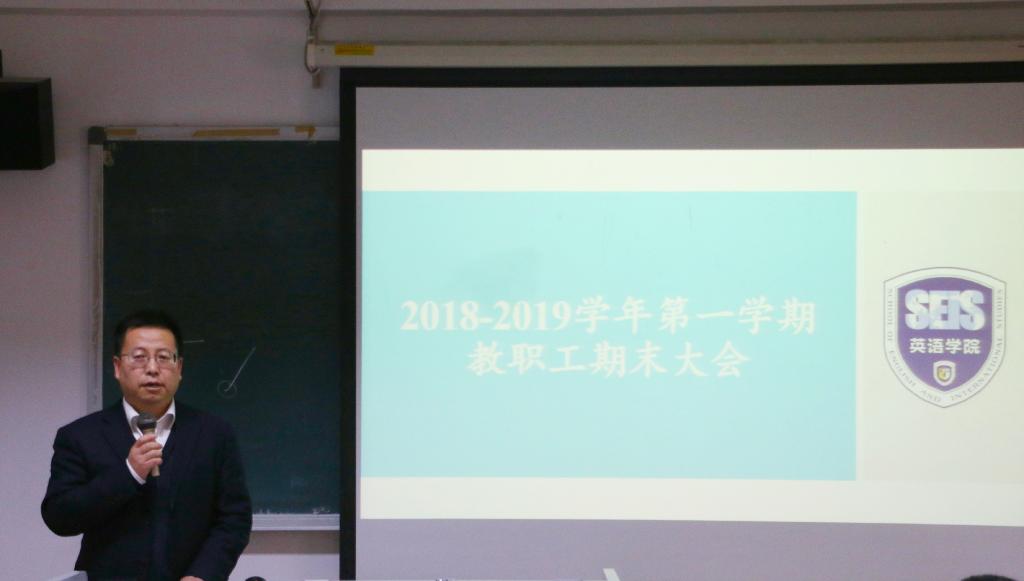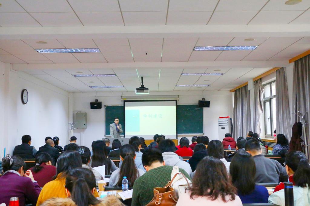 2019年1月11日上午,437ccm必赢国际官方网站在417教室组织召开2018-2019学年第一学期期末工作总结会。会议由437ccm必赢国际官方网站党总支书记路兴主持,学校分管联系437ccm必赢国际官方网站工作的校领导彭龙校长莅临指导并讲话。437ccm必赢国际官方网站全院教职员工出席参会。