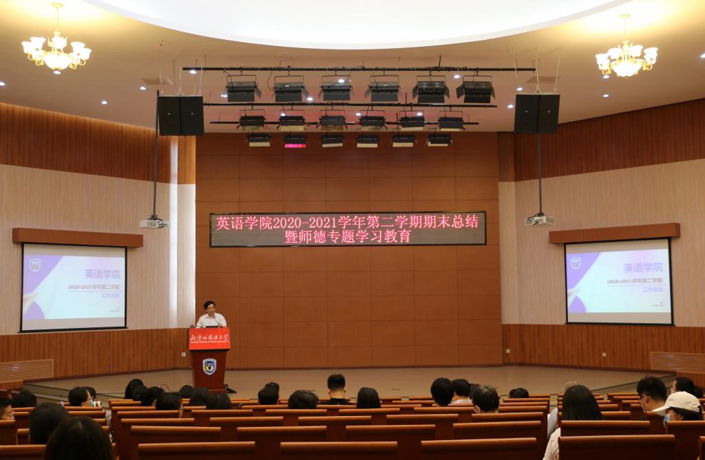 2021年7月9日,437ccm必赢国际官方网站在阿语楼国会厅召开2020-2021学年第二学期期末教职工大会,437ccm必赢国际官方网站全体教职工参加。