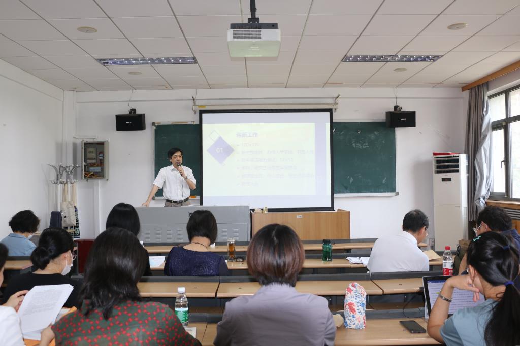 学生工作方面,学院已做好2021级迎新准备,妥善安排接待、新生测试、宣讲及见面会等工作。教学工作方面,本学期本科、研究生各开设课程60余门,针对留学生、未返校学生进行线上同时授课;学院积极响应并承担北外-法大联合培养项目中部分课程的授课工作。科研工作方面,鼓励教师积极申报各级各类科研项目、人才项目,参加国内外高级别学术会议,加强学术交流。课程及教材建设方面,必赢官网新开设MTI政治文献翻译方向,细化翻译硕士研究方向,培养高层次优秀人才;推进非通用语课程建设及教材建设。制度建设方面,进一步落实学院各方面管理制度,使学院管理更加细致、规范。人事工作方面,呼吁教师响应国家及学校号召,参与援疆援藏工作。此外,还介绍了校庆期间学校学院的多项活动,提醒教师关注学校疫情防控管理规定,严格按照规定执行。