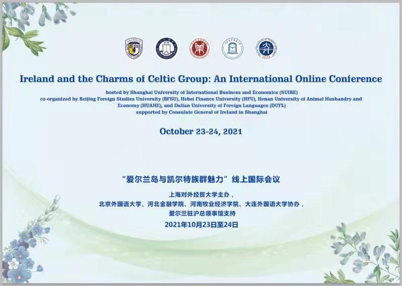 2021年10月23日-24日,“爱尔兰岛与凯尔特族群魅力”研讨会线上举办。本次会议由上海对外经贸大学主办,必赢官网爱尔兰研究中心与河北金融学院、河南牧业经济学院、大连外国语大学爱尔兰研究中心等教育部国别和区域研究备案中心共同协办。会议由开幕式、新书发布式和7组近40篇论文的主题发言组成,来自各高校的百余位师生参会,各抒己见,讨论气氛热烈。