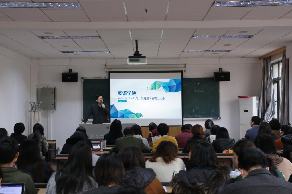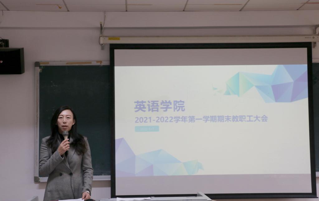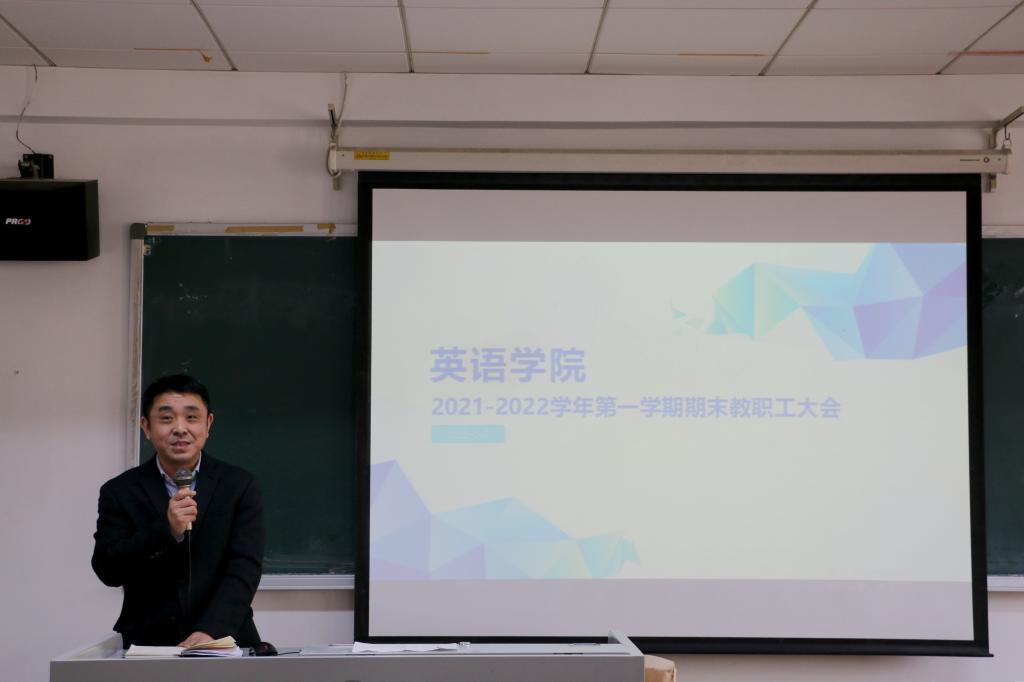 2022年1月7日,437ccm必赢国际官方网站召开2021-2022学年第一学期期末教职工大会,会议由党总支书记王明欣主持,学院全体教职工参会。