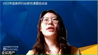 陈亚平老师首先对在座的所有课题组成员表示了肯定与祝贺。她说中心密切关注国际先进教育理论和二语习得理论发展,并利用科研成果来指导中小学老师的英语教学,帮助中国的儿童快速、有效地学习英语。中心今年开始设立教师行动研究课题,旨在帮助老师们发现教学当中的真问题,并且采取行动来真正地解决这些问题。陈老师还向参会老师们介绍了评审专家。
