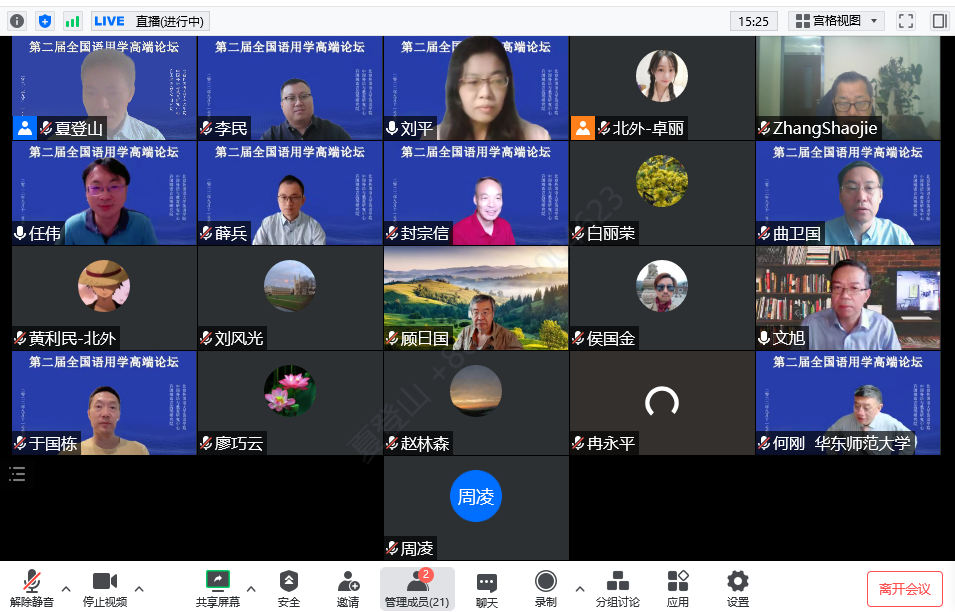 2022年9月11日至12日,437ccm必赢国际官方网站437ccm必赢国际官方网站、中国外语与教育研究中心和许国璋语言高等研究院联合召开了“第二届全国语用学高端论坛”。本次论坛由437ccm必赢国际官方网站黄教授召集,437ccm必赢国际官方网站夏登山教授组织,共邀请了28名全国语用学界知名学者在线上进行深度交流,主题包括会话蕴涵、言语行为、(不)礼貌研究、实验语用学、语用—语义界面研究等语用学经典论题及当前的热点话题,力图反映当前中国语用学研究的最高水平。