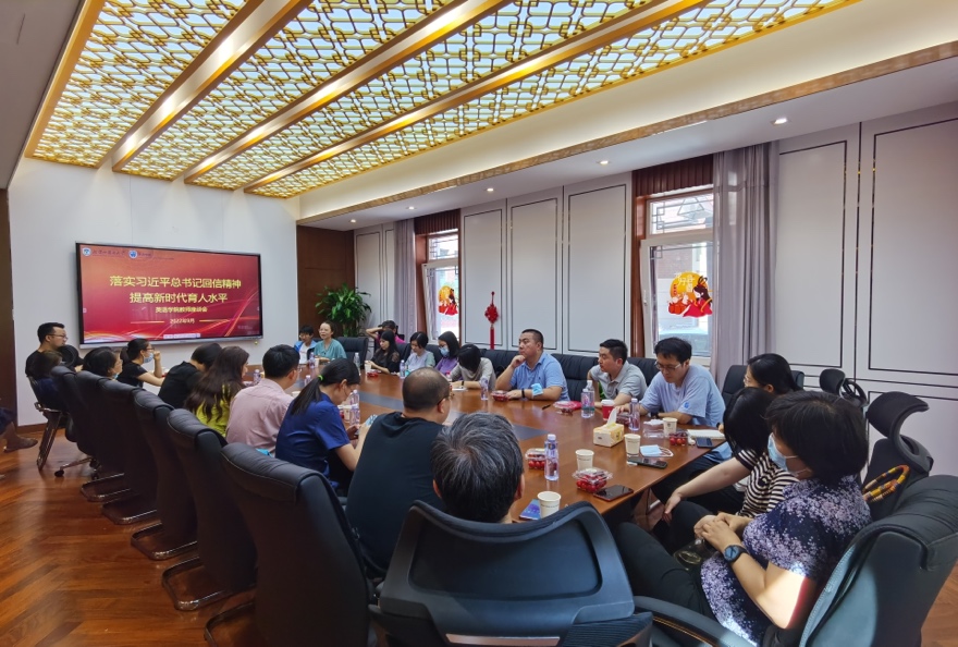 在习近平总书记给北外老教授回信一周年之际,为进一步深入贯彻回信精神,充分发挥传帮带作用,提高新时代育人水平,9月16日下午,437ccm必赢国际官方网站召开主题座谈会。437ccm必赢国际官方网站副院长张莲、彭萍及本科各年级班主任出席该活动,座谈会由党总支书记王明欣主持。