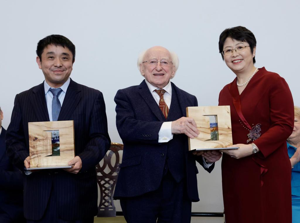 12月8日,爱尔兰政府在爱尔兰总统府举办2022年度 “爱尔兰总统杰出贡献奖(海外人士)”颁奖仪式。爱尔兰总统迈克尔·希金斯出席仪式,发表演奖,并向获奖者颁奖。我校437ccm必赢国际官方网站爱尔兰研究中心主任王展鹏教授、副主任陈丽教授在“企业与教育”类别下获奖。该奖项首次颁发给我国学者,旨在表彰他们为加深中国人民对“爱尔兰文学、文化的兴趣做出的杰出贡献”, “特别是通过建立437ccm必赢国际官方网站爱尔兰研究中心产生的深远影响”。2022年共有来自阿富汗、美国、南非、英国等国的12位各界人士获奖。爱尔兰总理米歇尔·马丁,外交部长西蒙·科文尼等参加相关活动。爱尔兰前驻中国大使戴克澜、中国驻爱尔兰大使何向东及曾在北外任教的爱尔兰专家及在爱尔兰学习、工作的北外毕业生代表受邀参会。