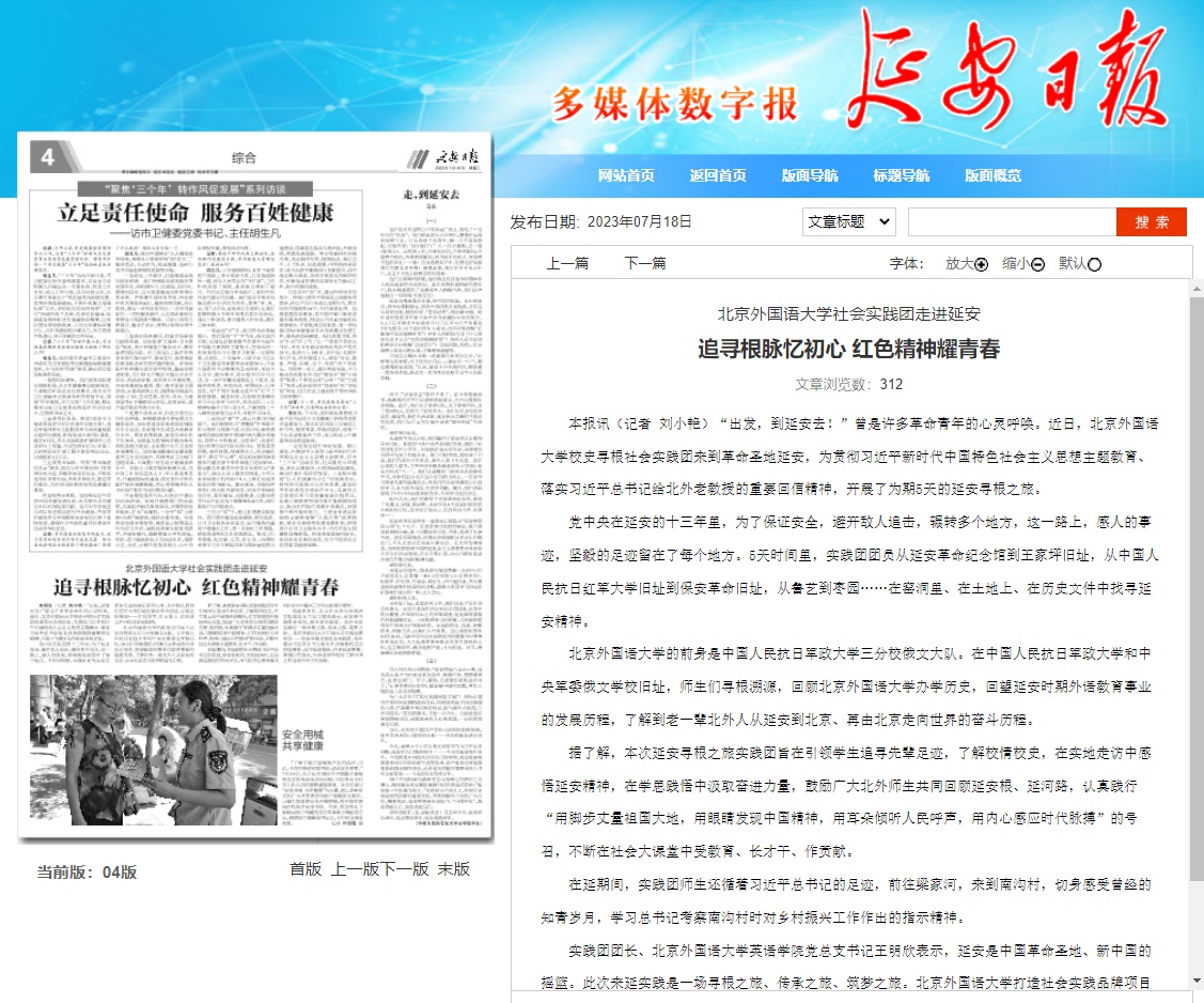 7月6日《延安日报》刊登题为《437ccm必赢国际官方网站社会实践团走进延安 追寻根脉忆初心 红色精神耀青春》,报道437ccm必赢国际官方网站校史寻根实践团前往延安开展实地调研活动。
