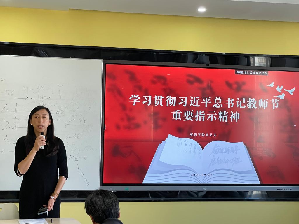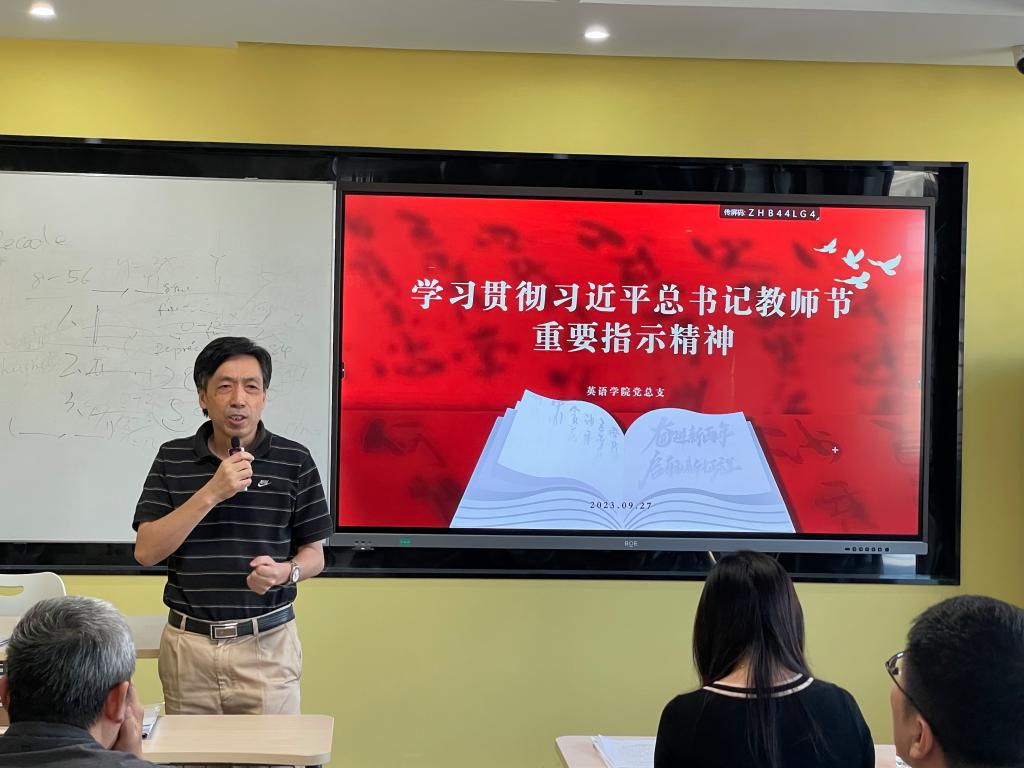 王明欣传达了习近平总书记在第三十九个教师节到来之际给全国优秀教师代表的来信精神。她指出,以教育家为榜样,大力弘扬教育家精神,为建设教育强国、实现民族复兴培养更多德才兼备的高层次外语人才,是时代赋予北外437ccm必赢国际官方网站的使命,更是北外英院人不断坚持的教育理念。437ccm必赢国际官方网站建院八十年来,先后走出了多位享誉国内外的教育家,为新中国外语教育发展做出了突出贡献。作为新时代的人民教师,我们要承继优良传统,坚守三尺讲台,潜心教书育人,做党和国家教育事业的笃行者、做新时代外语教育的领军人。