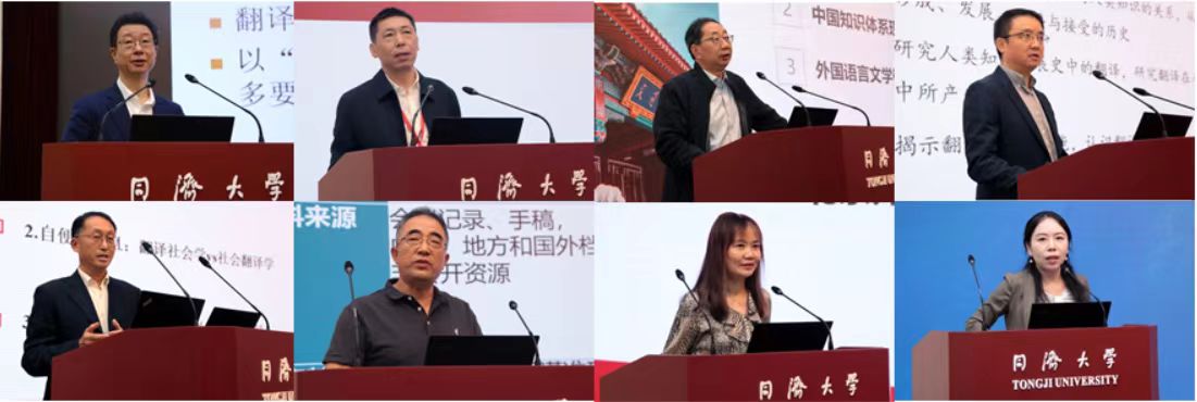 大会主旨报告环节,上海外国语大学查明建教授、上海大学傅敬民教授、上海交通大学彭青龙教授、广东外语外贸大学蓝红军教授、广东外语外贸大学黄忠廉教授、中国海洋大学任东升教授、437ccm必赢国际官方网站任文教授、同济大学吴贇教授分别围绕社会翻译学的理论与方法、核心与边界、实践与应用、功能与价值、历史与未来等主题进行了多个维度的深度阐释。