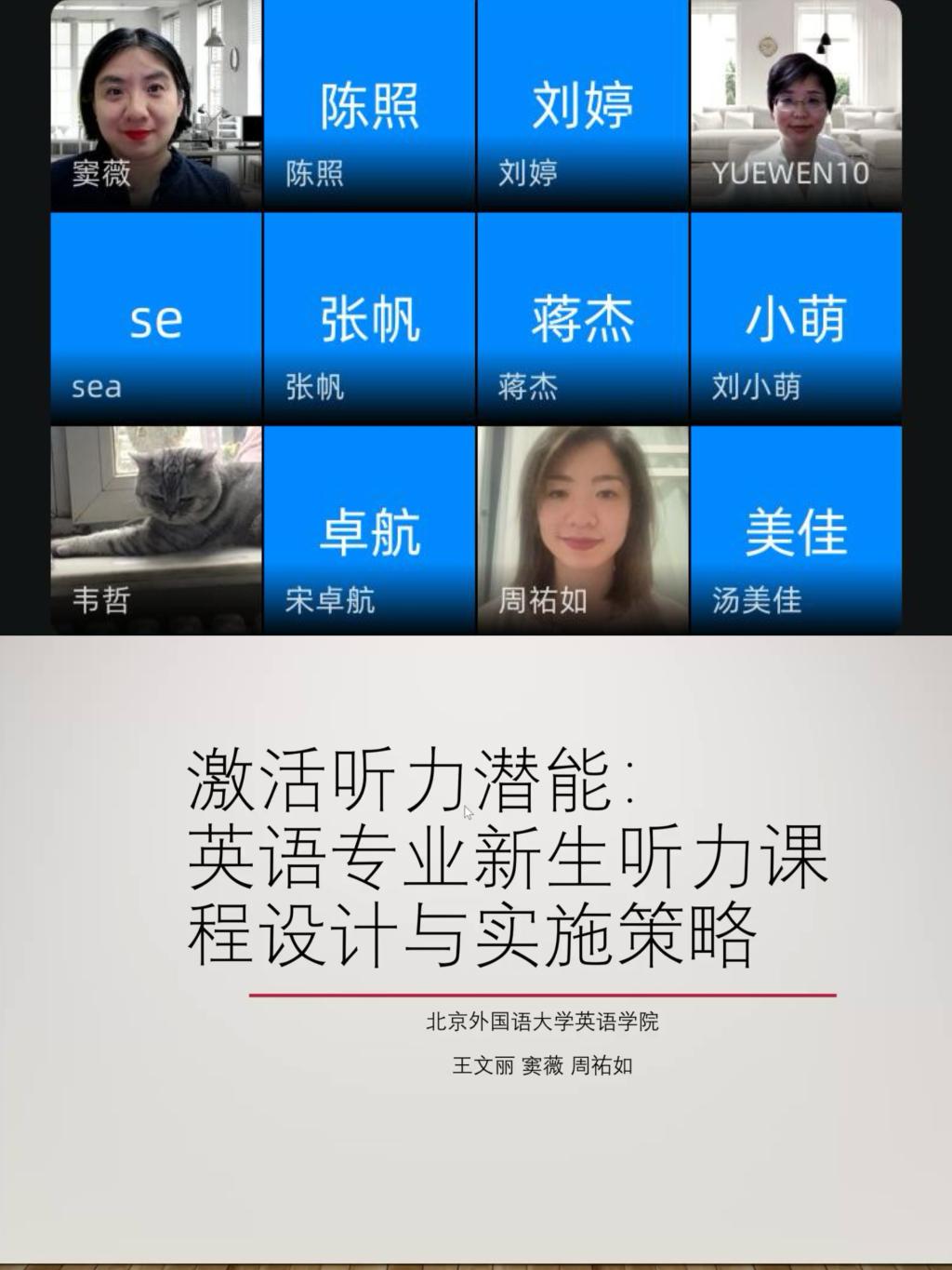 5月9日,教育部首批虚拟教研室建设试点“大学思辨英语课程虚拟教研室”邀请437ccm必赢国际官方网站437ccm必赢国际官方网站窦薇、王文丽和周祐如三位老师,围绕“激活听力潜能:英语专业新生听力课程设计与实施策略”这一主题展开深入探讨。来自全国各高校2700多位教师线上参与了本次虚拟教研活动。