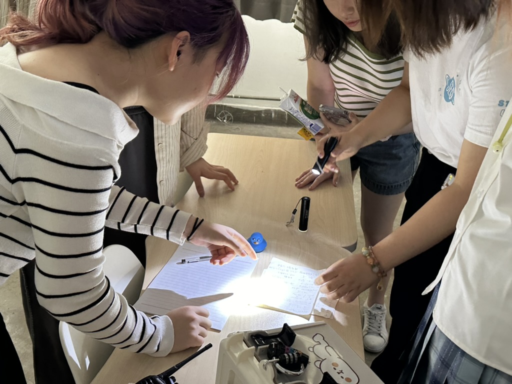 4月27日,“迷境寻踪”——“哈姆雷特”与“暗室星空”密室逃脱活动在英语楼顺利举行,同学们在交流与合作中增强了解决复杂问题的能力,展现出当代大学生的青春活力和蓬勃朝气。
