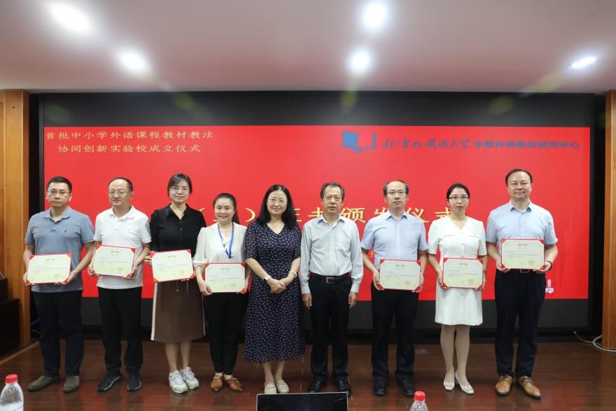 中心领导与中小学外语课程教材教法协同创新实验校合影