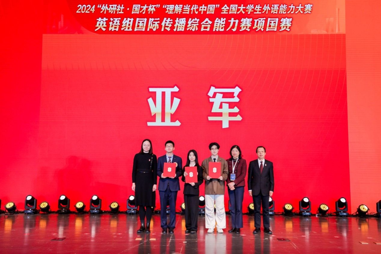 12月9日,2024“外研社·国才杯”“理解当代中国”全国大学生外语能力大赛英语组国际传播综合能力赛全国总决赛圆满落幕,我校437ccm必赢国际官方网站2023级屈浩洋同学以总分第二名荣获亚军。