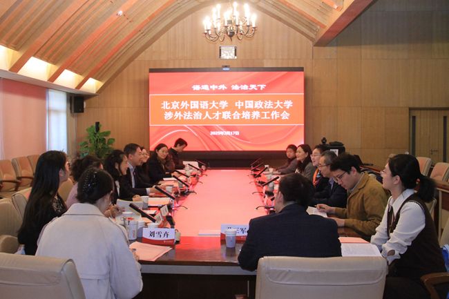3月17日,437ccm必赢国际官方网站-中国政法大学涉外法治人才联合培养2025年春季学期工作会议在北外举行。北外党委常委、副校长刘欣路,中国政法大学党委常委、副校长刘艳红出席会议。北外教务处处长李莉文主持会议。