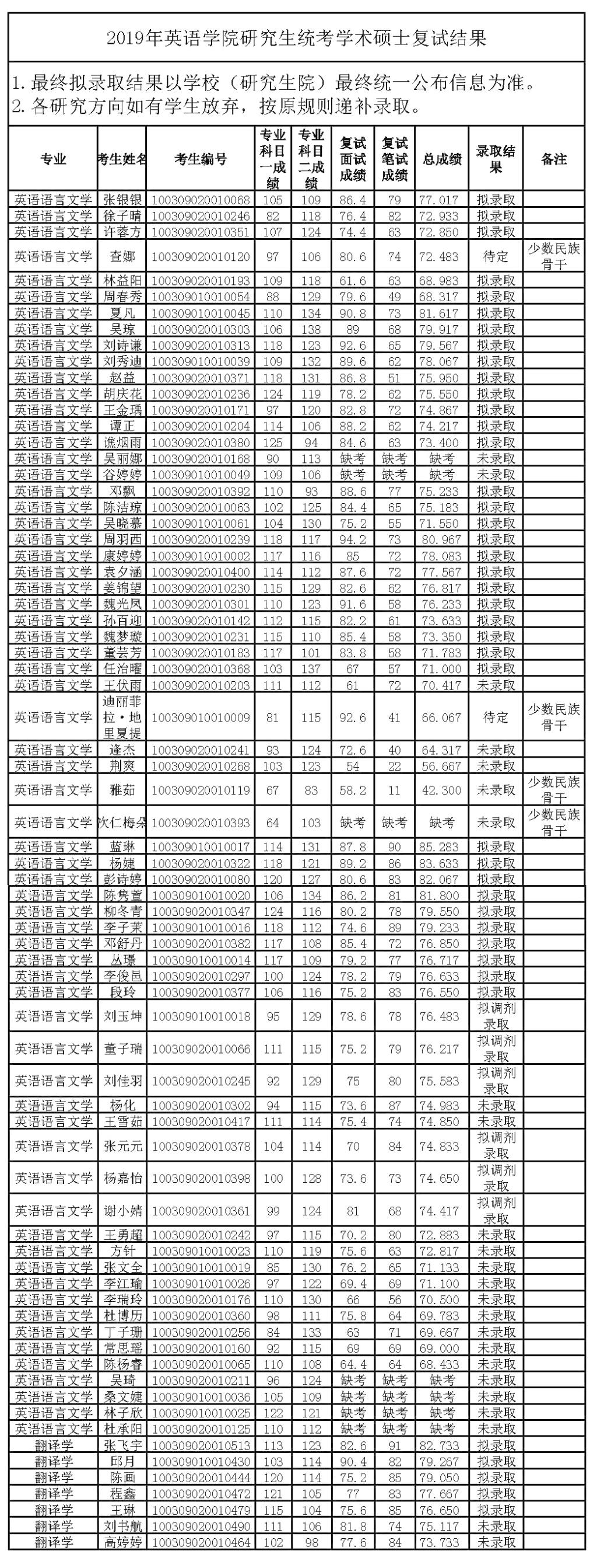 2019年437ccm必赢国际官方网站研究生统考学术硕士复试结果公示