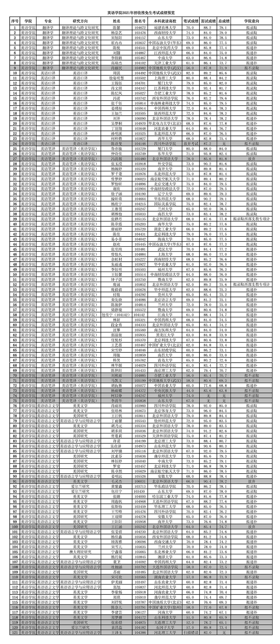 437ccm必赢国际官方网站2021年招收推免生考试成绩预览