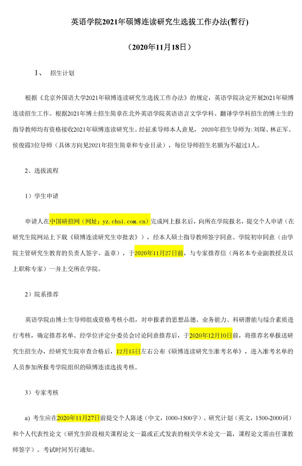 2021年硕博连读研究生选拔工作方法