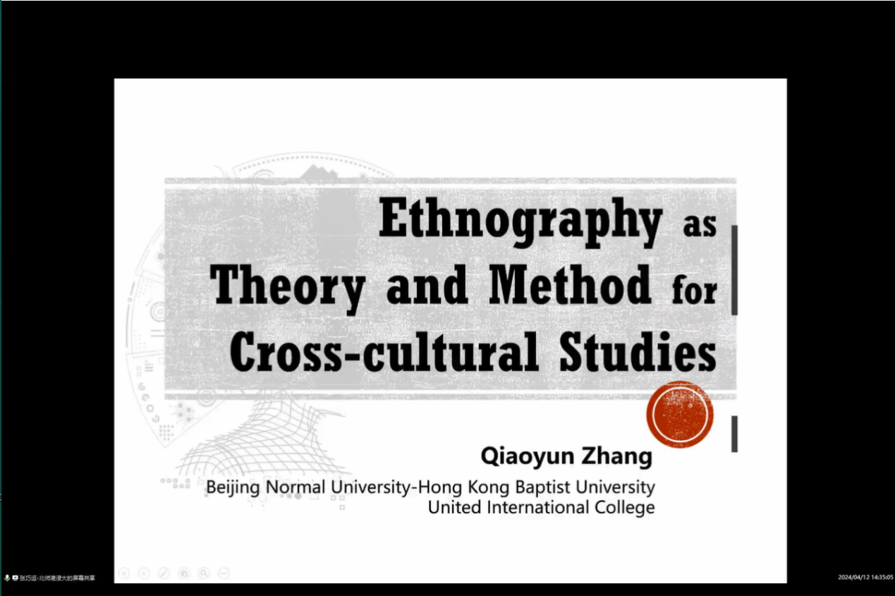 2024年4月12日下午,必赢官网跨文化研究中心邀请北京师范大学-香港浸会大学联合国际学院张巧运博士做题为“民族志作为跨文化研究的理论和方法”的线上学术讲座。讲座由跨文化研究中心主任刘杨博士主持,437ccm必赢国际官方网站师生及校内外老师及同学聆听了本次讲座。