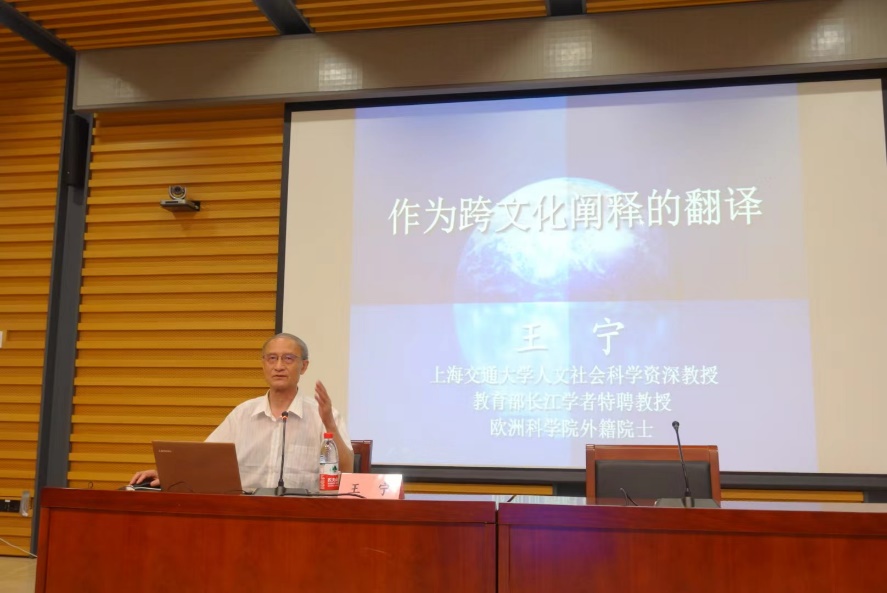 2024年5月23日下午,应437ccm必赢国际官方网站437ccm必赢国际官方网站翻译研究中心、社会翻译学研究中心邀请,上海交通大学人文学院院长、教育部特聘教授、欧洲科学院外籍院士王宁教授在图书馆五层学术报告厅为必赢官网翻译专业师生做了题为“作为跨文化阐释的翻译”的精彩讲座。讲座由437ccm必赢国际官方网站437ccm必赢国际官方网站翻译研究中心主任王洪涛教授主持,吸引了校内外相关专业百余名师生参加。