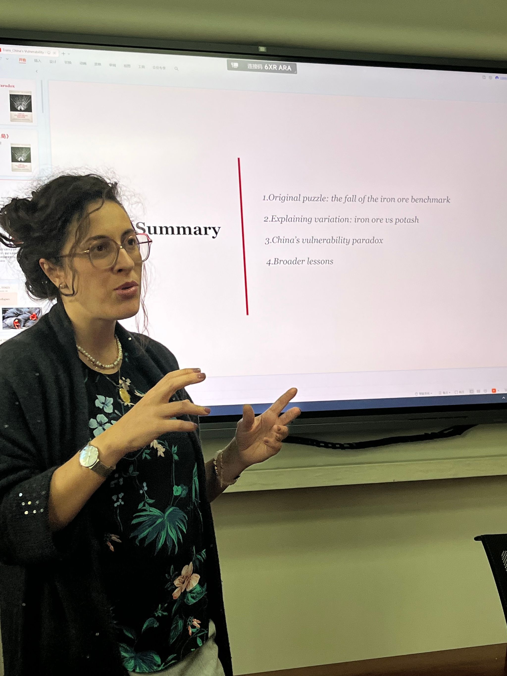 讲座探讨了中国急剧的经济增长给全球商品市场带来的变化。通过铁矿石、钾肥、铜和铀市场等一系列案例研究,马思佳认为,中国国内和国际市场利益相关者之间的市场力量平衡是理解全球市场制度变革的关键。在中美经济紧张局势加剧、去风险范式兴起之际,讲座对中国和全球市场政治经济之间的互动动态提供了一种细致入微的理解。