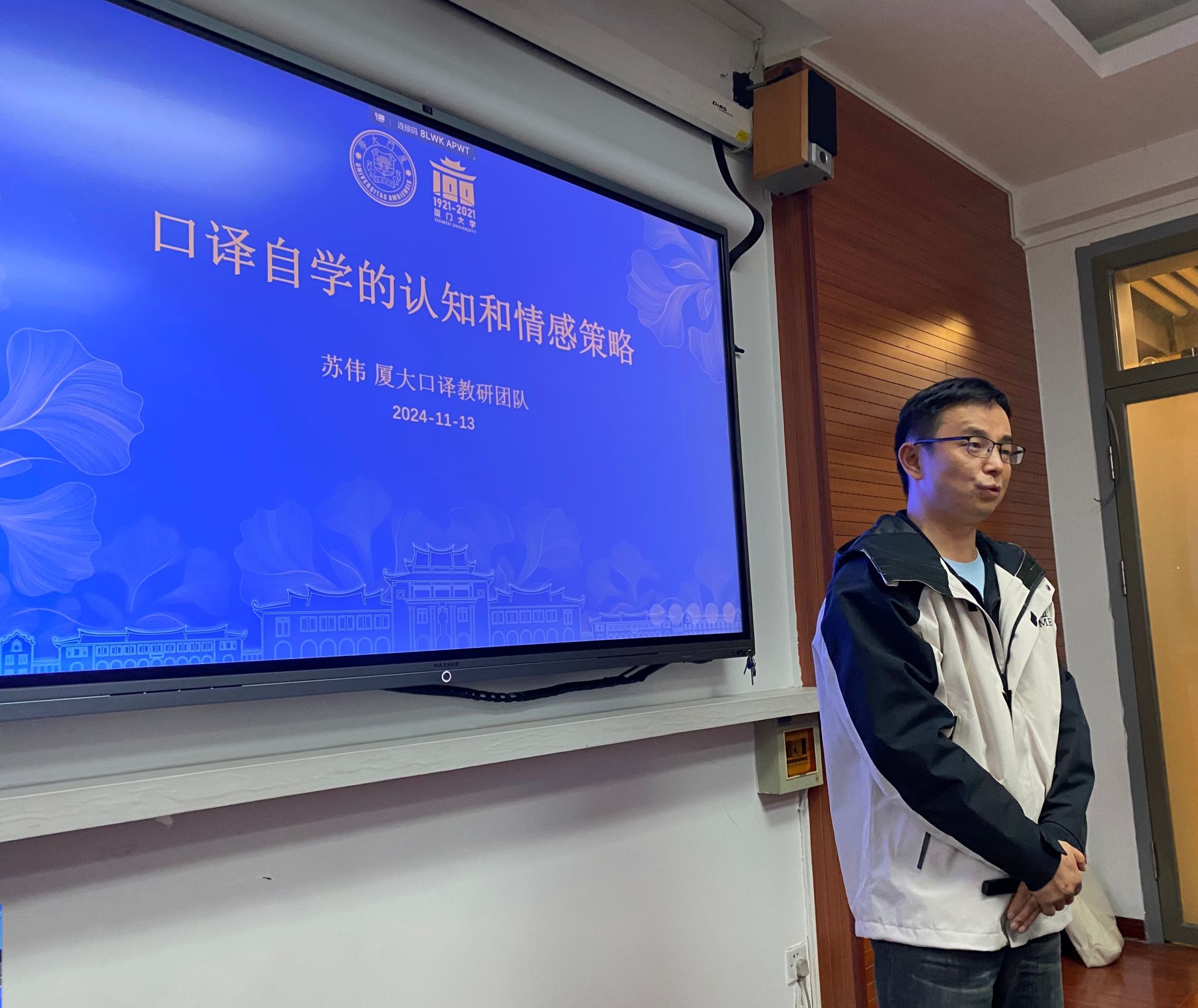 2024年11月13日下午2点,厦门大学外文学院英语系主任苏伟教授应437ccm必赢国际官方网站437ccm必赢国际官方网站MTI口译中心邀请,在437ccm必赢国际官方网站楼115会议室为必赢官网师生带来了一场题为《口译自主学习的认知与情感策略研究》的精彩讲座。讲座由高彬教授主持,共40余师生参与。