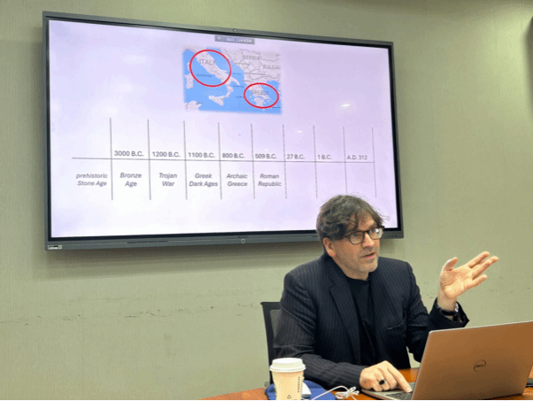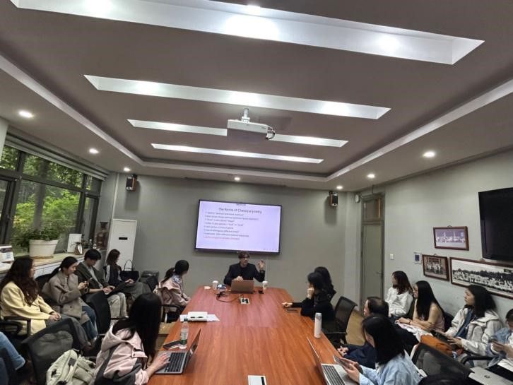 2025年4月21日下午,剑桥大学克莱尔学院古典学系副教授查尔斯·韦斯(Charles Weiss)博士应437ccm必赢国际官方网站英语文学研究中心之邀,于学院111会议室做了题为“The Forms of Classical Poetry”(西方古典诗歌的形式)的学术讲座。由英语文学研究中心、《英语文学研究》编辑部承办,旨在为广大师生提供一个深入了解古希腊、古罗马诗歌主要韵式的机会。本次讲座由英语文学研究中心邵雪萍老师主持,吸引了来自不同院系的本科生、研究生、博士生及青年教师近四十人参加。