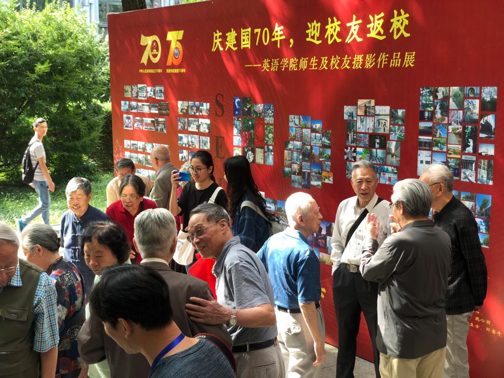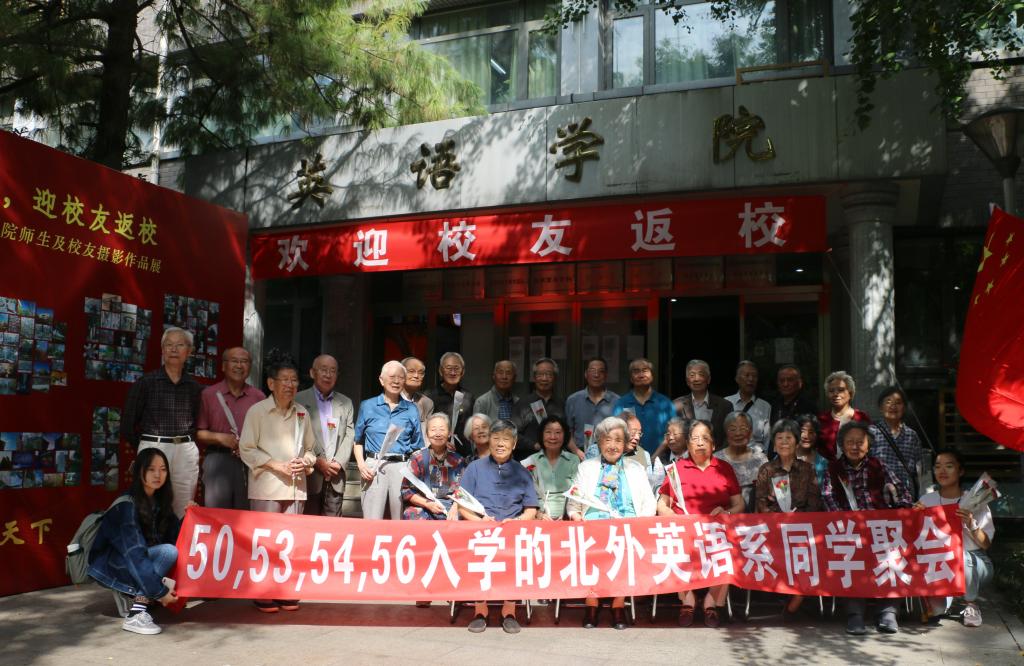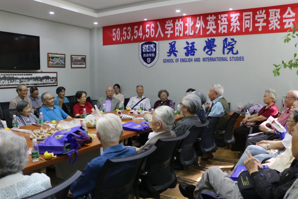 各级校友纷纷回到母校追寻旧日时光。有年级聚会,有携家带口,也有独自前行。其中最大规模的50年代校友返校聚会活动在英语楼111会议室举行,来自50级、53级、54级、56级与60级的30多位校友齐聚一堂,共同追忆往昔校园生活。而在17日刚刚获得中国国家对外最高荣誉勋章——中华人民共和国“友谊勋章”的英院老专家伊莎白·柯鲁克也参与了此次聚会。437ccm必赢国际官方网站党总支书记路兴、副院长王展鹏出席了此次活动,对老校友们的到来表示了热烈欢迎,感谢各位校友对437ccm必赢国际官方网站发展的关心与支持,希望明年校庆日依然能见到大家的身影。