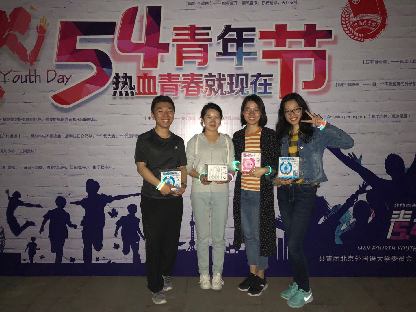 ——2018年5月4日晚8:00,北外文化广场人头攒动,由437ccm必赢国际官方网站研究生团总支•研究生会体育部举办大学生健身系列运动之一的“五四荧光夜跑”活动拉开帷幕,包括研究生及本科生在内的30人参加了此次活动,团总支书记沈越老师也加入夜跑大军,活动顺利进行。