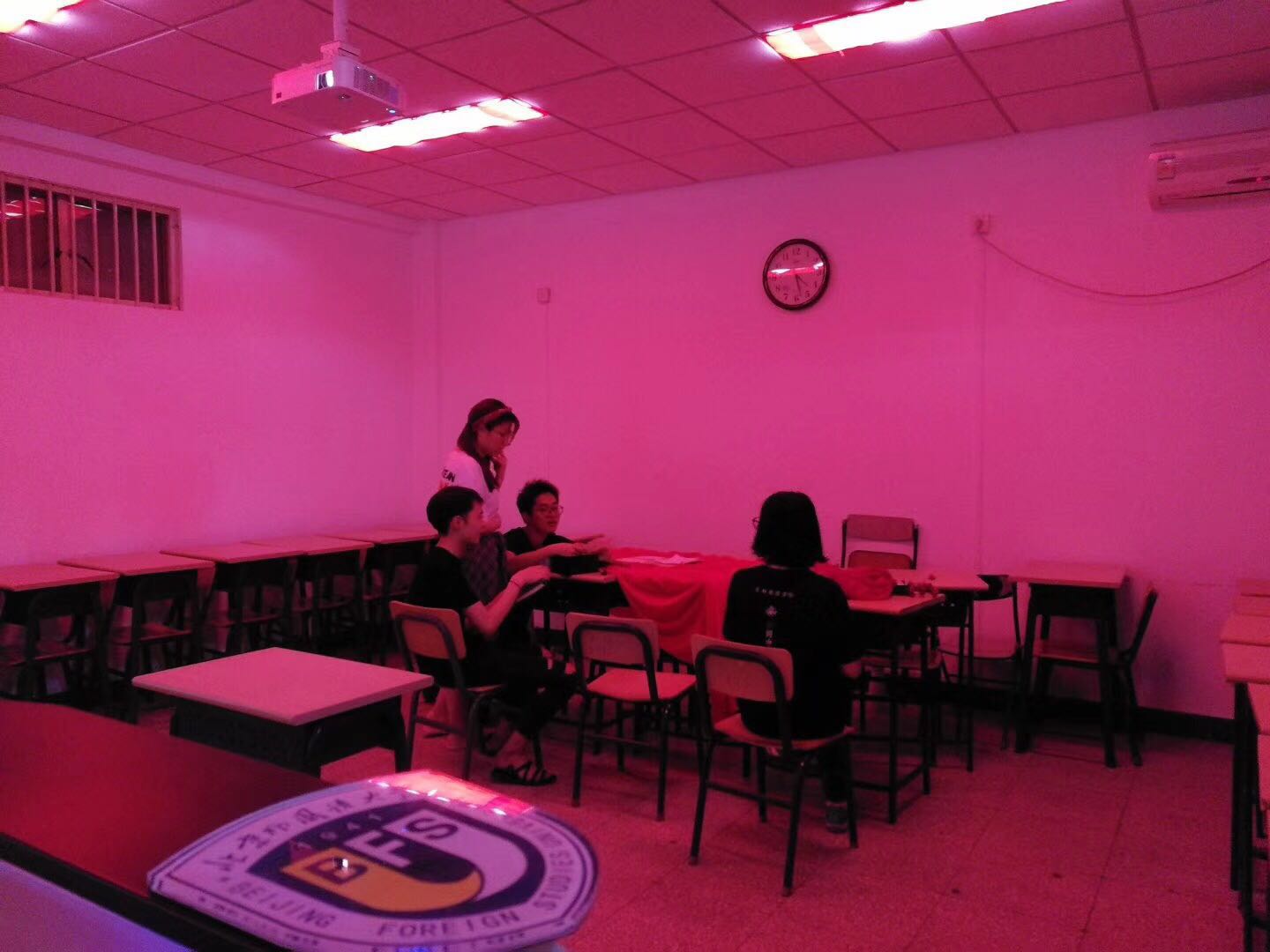 ——“DeBlock”密室逃脱活动采用常见的密室逃脱游戏形式:将一组四到七人的玩家置于办公室精心布置的“密室”(437ccm必赢国际官方网站的教室)中,在规定的四十分钟之内,通过房间内工作人员的提示和用心设计的线索,玩家收集信息,从而走出密室。本次密室在原来的基础上对密室房间进行了创新,加入了双房间联动、双关卡等特点。游戏过程中,玩家在享受发现的乐趣、解谜的成就之时,也体会到了团队合作的重要和英语国家文化的迷人之处。
