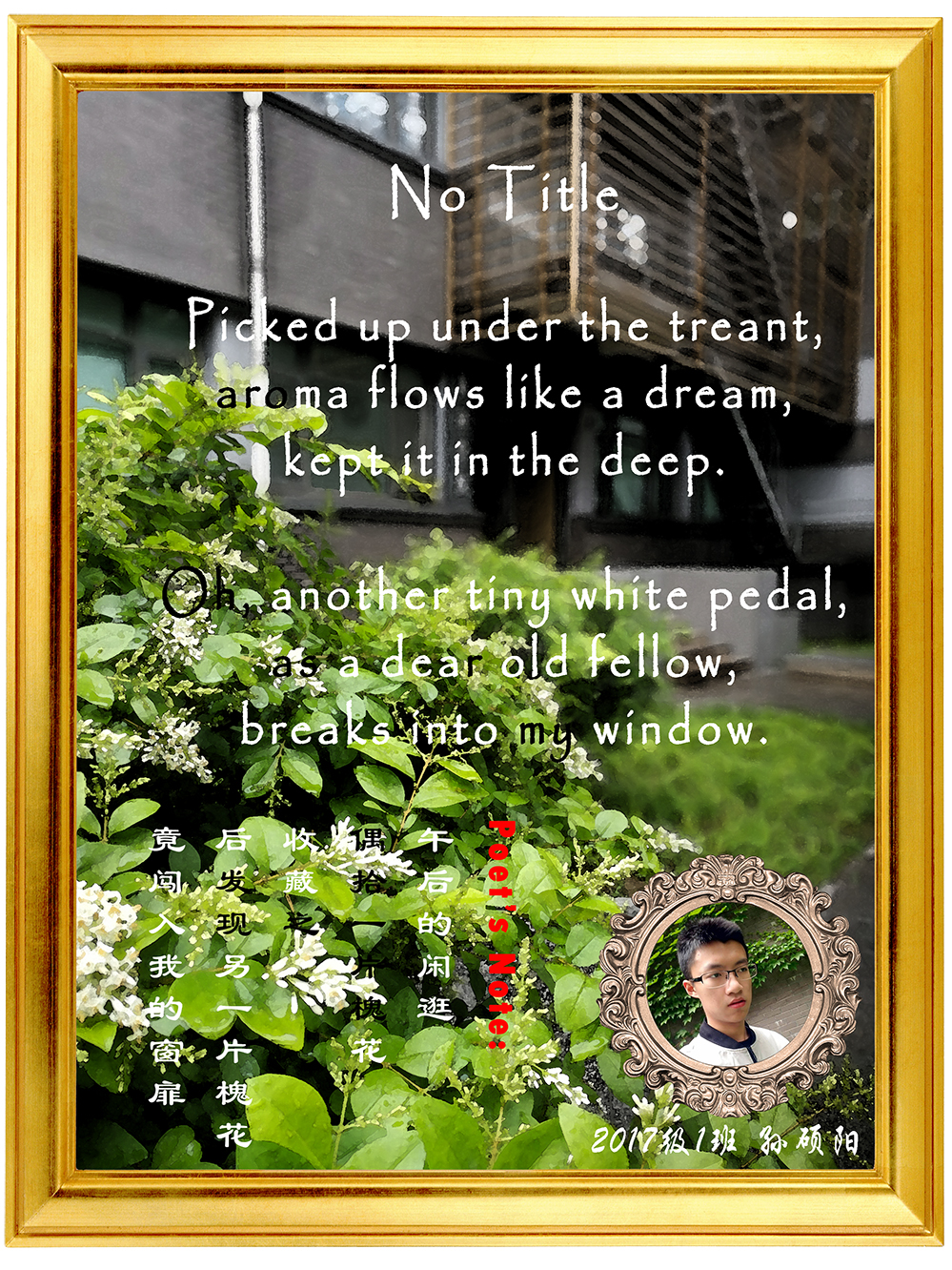 ——2018年春季学期,为丰富教学内容及激发学生学习兴趣,“英语批判性阅读(精读)2:文学与人生”课程教研组依托教材相关内容,组织学院2017级共7个班所有本科学生开展了“英文诗歌创作”活动,同学们积极参与,均提交了优秀作品,经过同学间相互赏读和评议,甄选出最受欢迎的21首英文诗歌作品,特此展示。此次活动中,同学们展现出高涨的热情、非凡的创造力、丰富的情感知识、健康的审美情趣、深刻的生活感悟,以及优秀的英文书面表达能力。