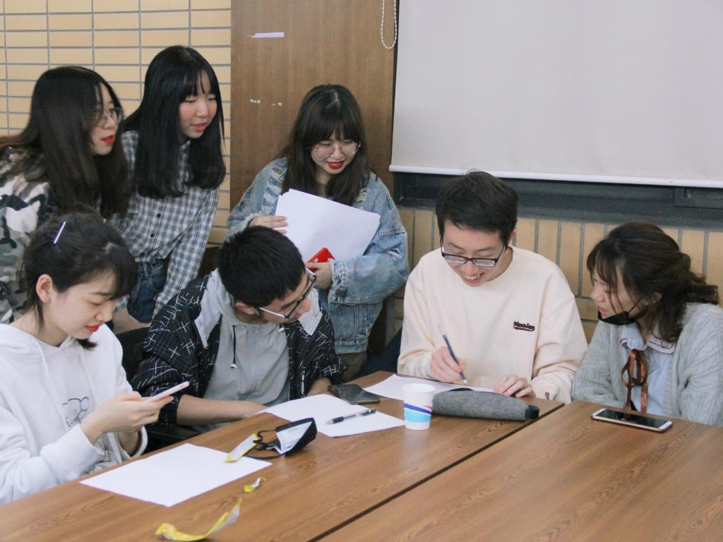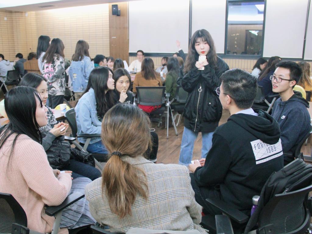 2019年4月13日晚,437ccm必赢国际官方网站团学联生活部、学术部于逸夫楼大会议室举办了语伴线下破冰活动。来自于英、西、德、法、日五个不同语系的同学欢聚一堂,共同为437ccm必赢国际官方网站团学联语伴活动拉开了线下破冰的帷幕。
