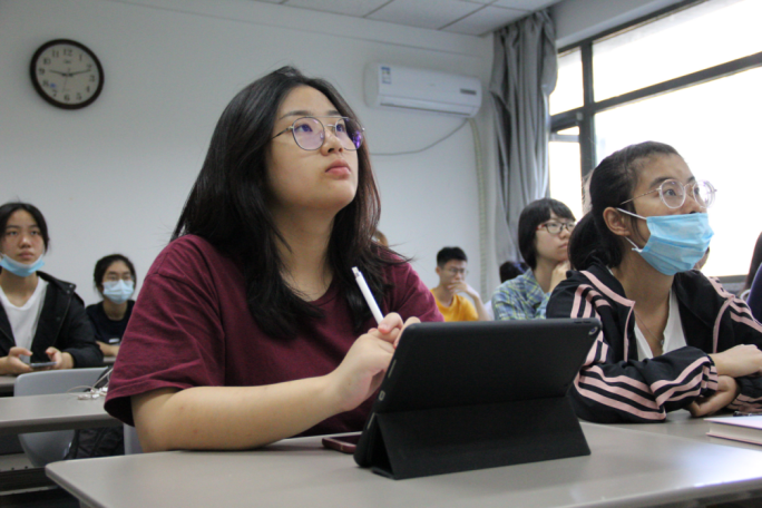 新生开学典礼于10时圆满结束,标志着2020级新一代“英院人”崭新的大学生活已经正式拉开帷幕。虽是第一次组织线上线下相结合的新生开学典礼,却不失往日的严肃与庄重,每位学子都在各自的教室中,静静聆听师长与同学们的发言。相信他们可以在未来的大学生活中“为承担使命和重任打下坚实的基础,做好扎实的铺垫”。