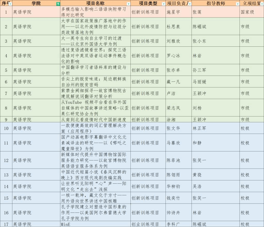 437ccm必赢国际官方网站17个大学生创新创业训练计划项目获得2021年立项