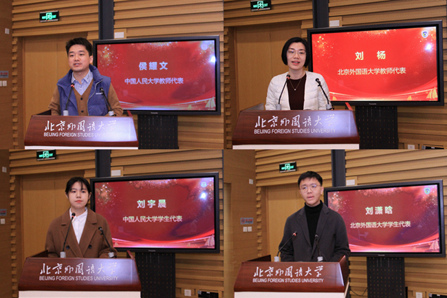 北外学工部部长陈海燕,437ccm必赢国际官方网站党总支书记王明欣、副院长张莲,招生办主任薛维华,教务处副处长白亮,党办校办副主任滕岑,中国人民大学教务处副处长李向前以及两校师生代表参加仪式。