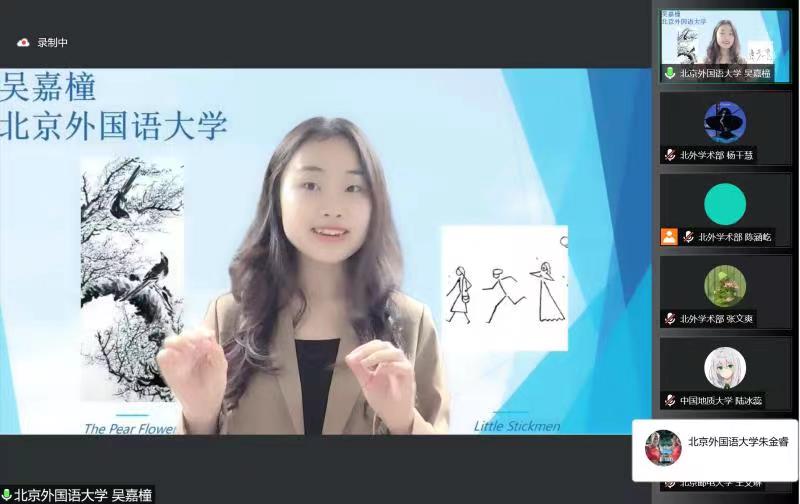 首都高校英语演讲风采大赛是教育部首个批准举办的由大学生自己策划、举办的英语演讲风采比赛,也是北外英语文化节中的重头戏之一。比赛所有题目和环节完全源自学生自己的创意与构想,真正体现了当代大学生的思想深度与广度,让大学生以自己的角度思考问题、讨论问题。本次演讲大赛通过各校分别举办初赛的形式,从所有参赛选手中选拔出19名选手,最终参与北外决赛。本次决赛采用线上方式举办,以“Life in Full Blossom Towards the Sun”为主题,选手们以演讲的方式讲述自己从不同人物战胜困难、克服挫折、追求梦想的故事中获得的感动与启示。比赛选手中,有雄辞善辩者,也有娓娓道来者,面对同一主题,选手们给出了各自不同的精彩阐释。选手们沉着冷静,在几分钟时间内全身心沉浸在自己的演讲之中,将观众带入他们的精神世界。演讲完毕后,选手们相继回答评委提问,对自己的演讲内容进行更深入的阐释,为我们带来一场精彩绝伦、引人深思的演讲比赛。最终,来自北京科技大学的张川慧子获得第一名,437ccm必赢国际官方网站的吴嘉橦获得第二名,北京林业大学的李怡帆获得第三名。