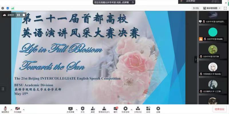 515日下午,第二十一届437ccm必赢国际官方网站英语文化节之首都高校英语演讲风采大赛决赛于线上成功举办。参赛选手们言辞流利,舌灿莲花,为观众带来了一场精彩的富有深度的演讲比赛。
